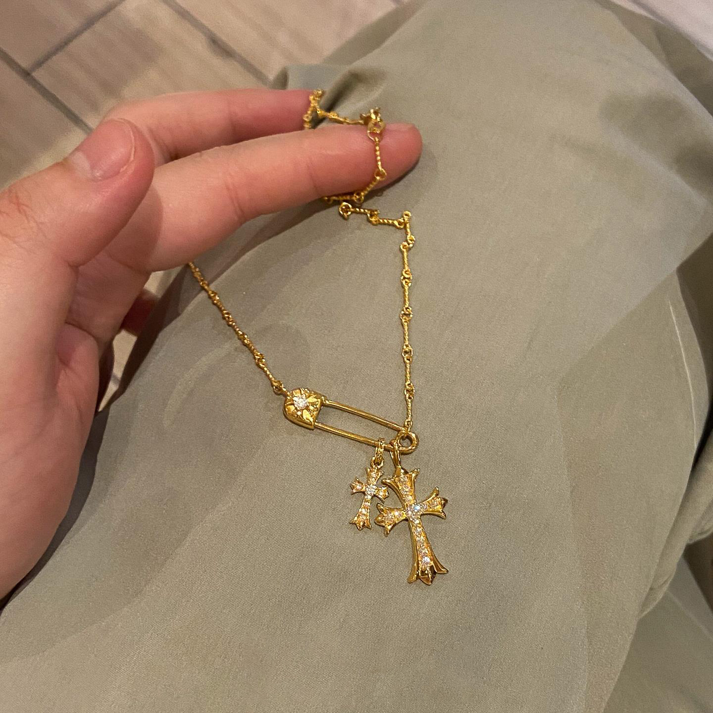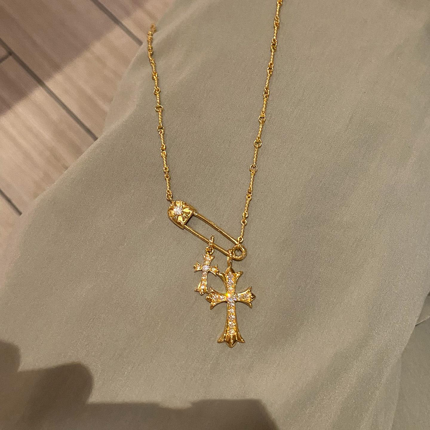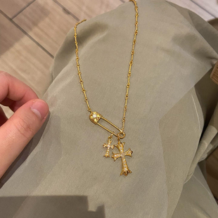 輕奢小眾高級感氣質(zhì)鎖骨頸鏈 S925純銀金色別針十字架吊墜項鏈女款由