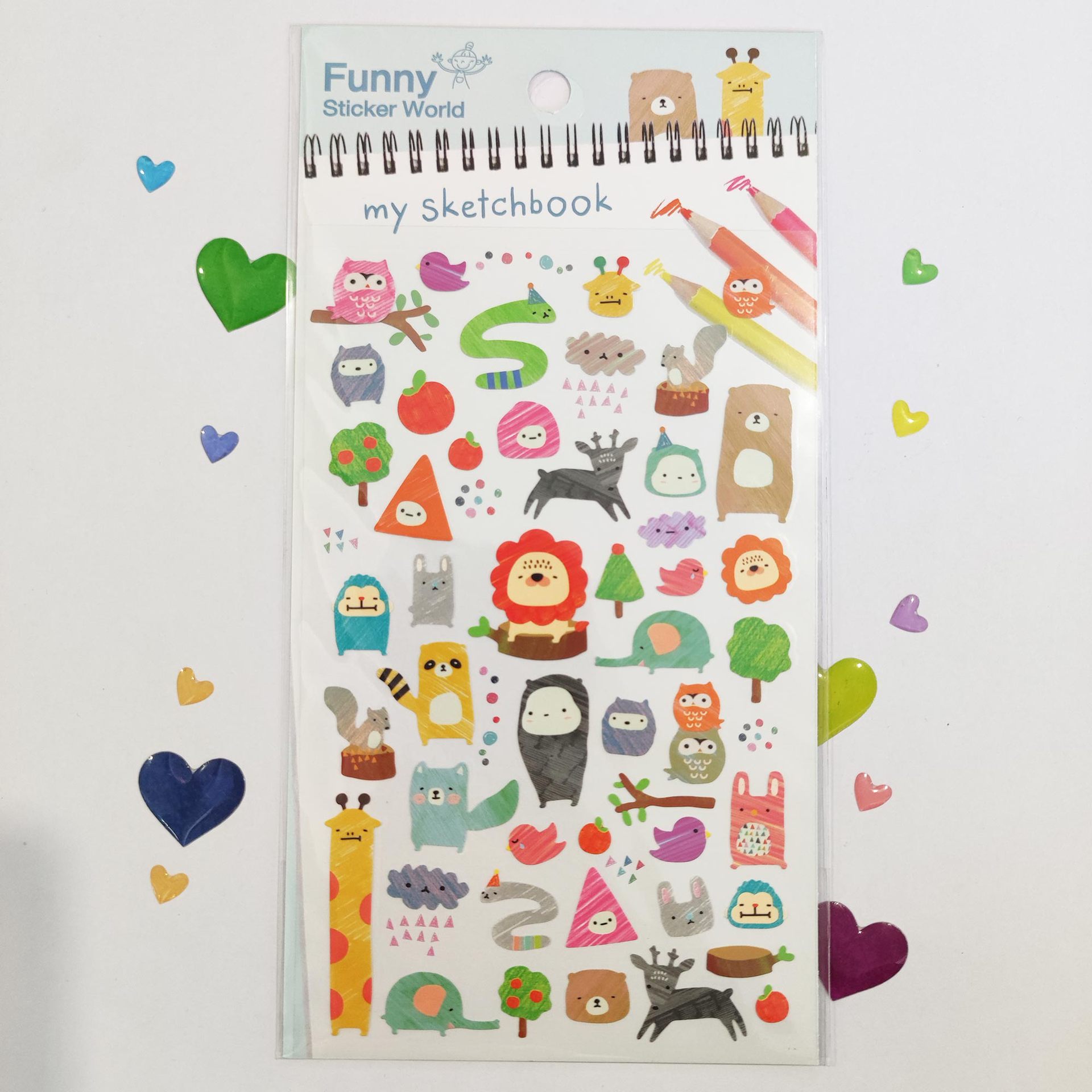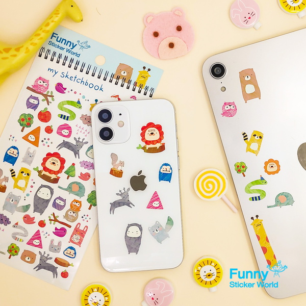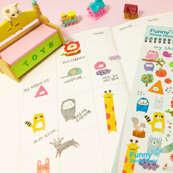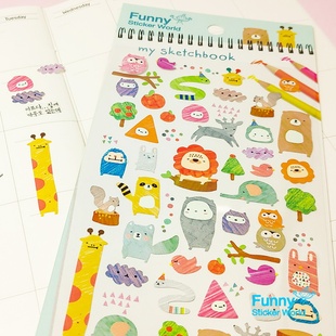 韓國(guó)funny貼紙 sketchbook 可愛(ài)動(dòng)物小熊獅子手賬素材裝 飾貼畫(huà)由