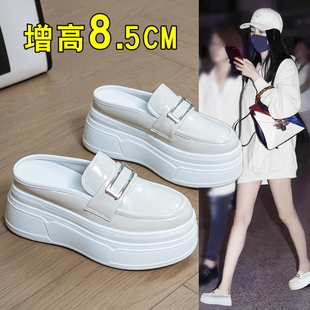 一腳蹬無后跟小白鞋 簡約8cm 女外穿2025春夏秋新款 軟底包頭半拖鞋由