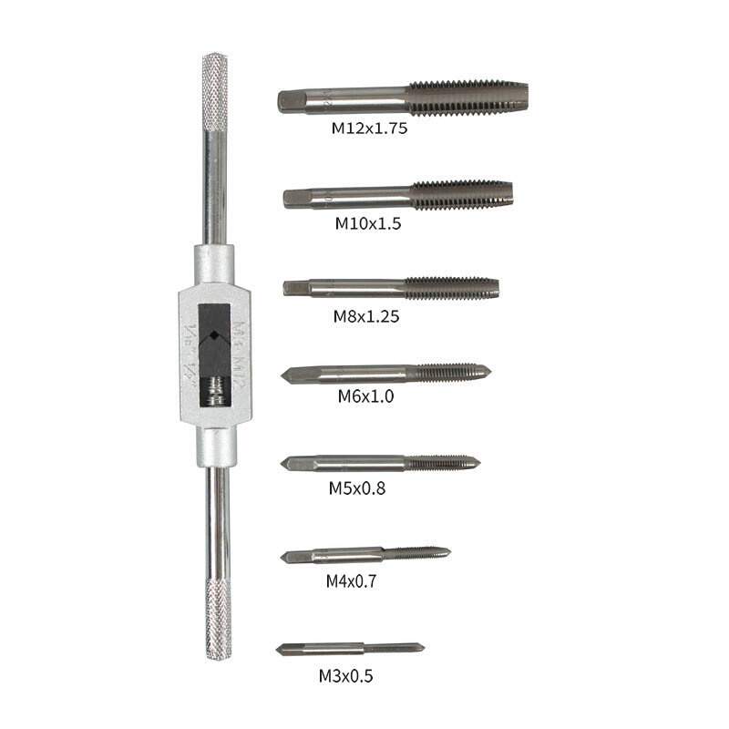 八件套絲錐板牙套裝 8PC公制手用絲錐架絲錐螺紋扳手組合套裝由