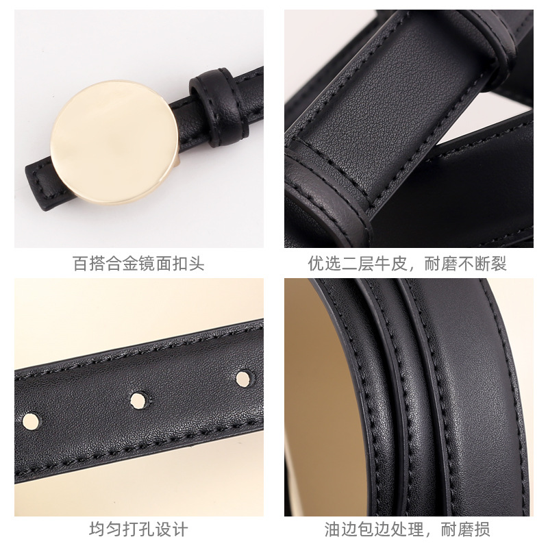 日本品質皮帶女網紅同款 飾西裝 牛仔褲 腰帶女 2025圓扣真皮細腰帶裝由