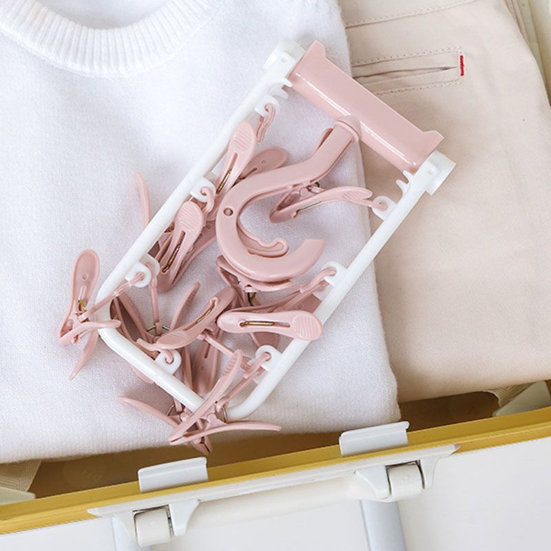 衣架宿舍用學生折疊衣架便攜旅游晾衣架多夾子掛襪子架曬襪子神器