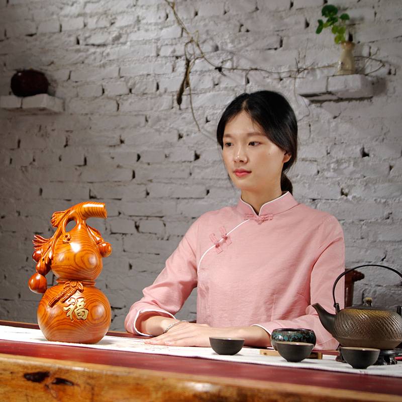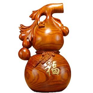 飾新居送禮 實(shí)木質(zhì)雕刻葫蘆擺件花梨木雕刻工藝品家居客廳辦公室裝由