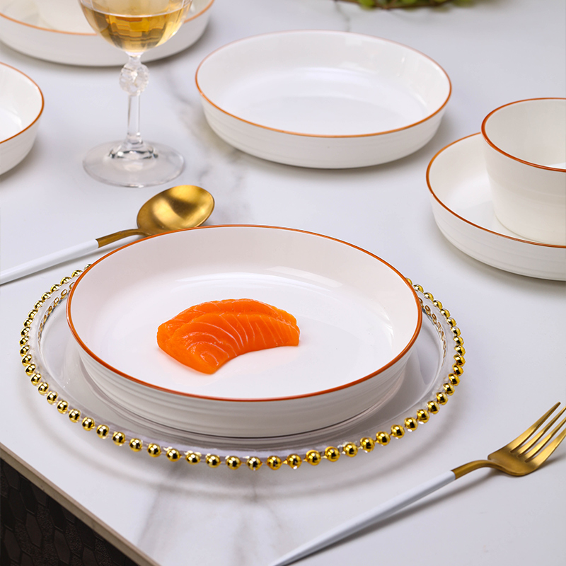 餐具甜品沙拉碗 水果盤家用客廳金邊玻璃碗碟輕奢大氣盤子零食套裝