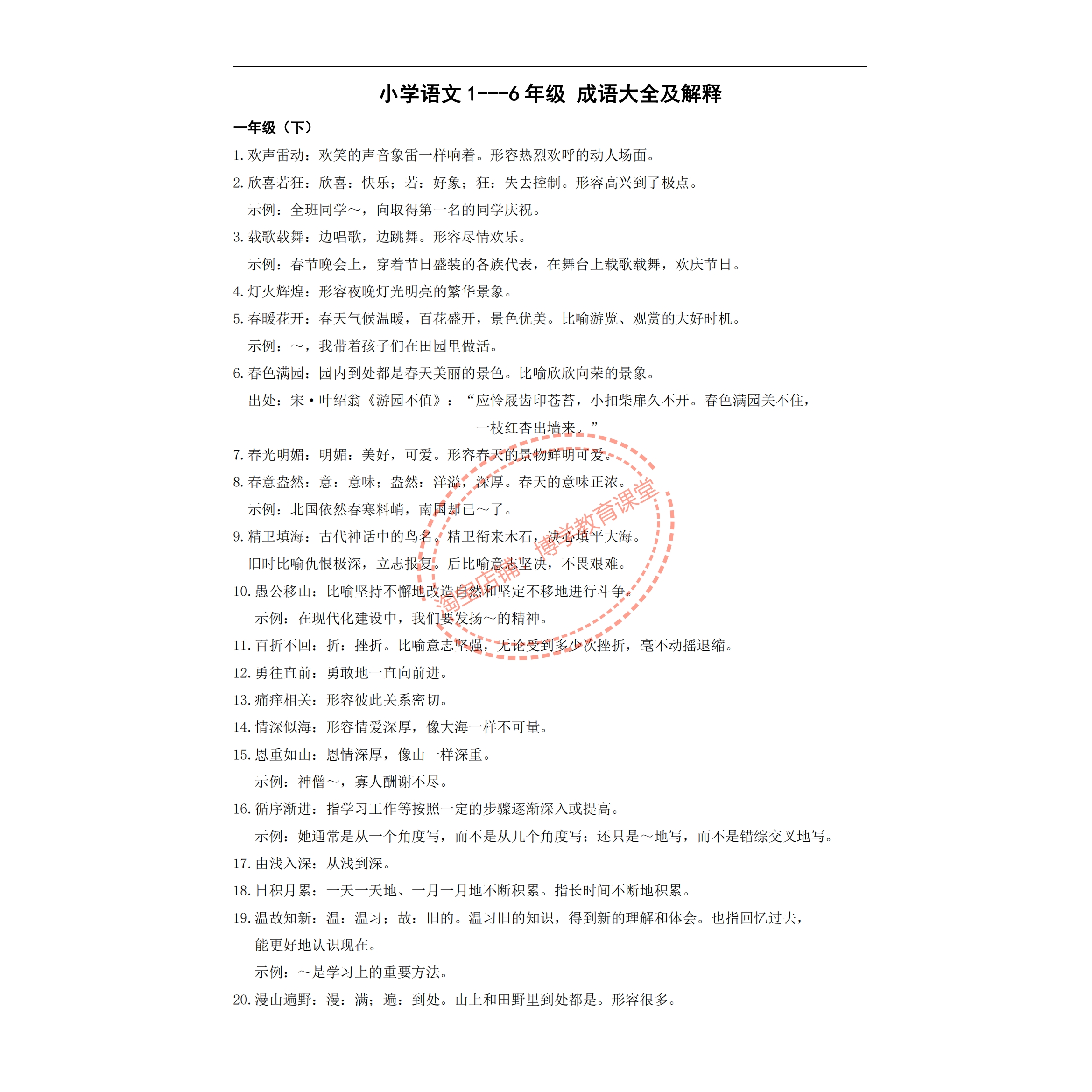 6年級通用語文常用成語解釋成語故事成語積累匯總本 小學1由