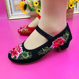 透氣媽媽鞋 廣場舞鞋 方跟女鞋 新款 布女漢服鞋 秋季 繡花鞋 老北京布鞋由