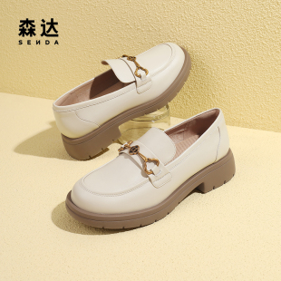 商場同款 森達厚底真皮樂福鞋 女鞋 秋款 超軟小羊皮不累腳低跟單鞋由