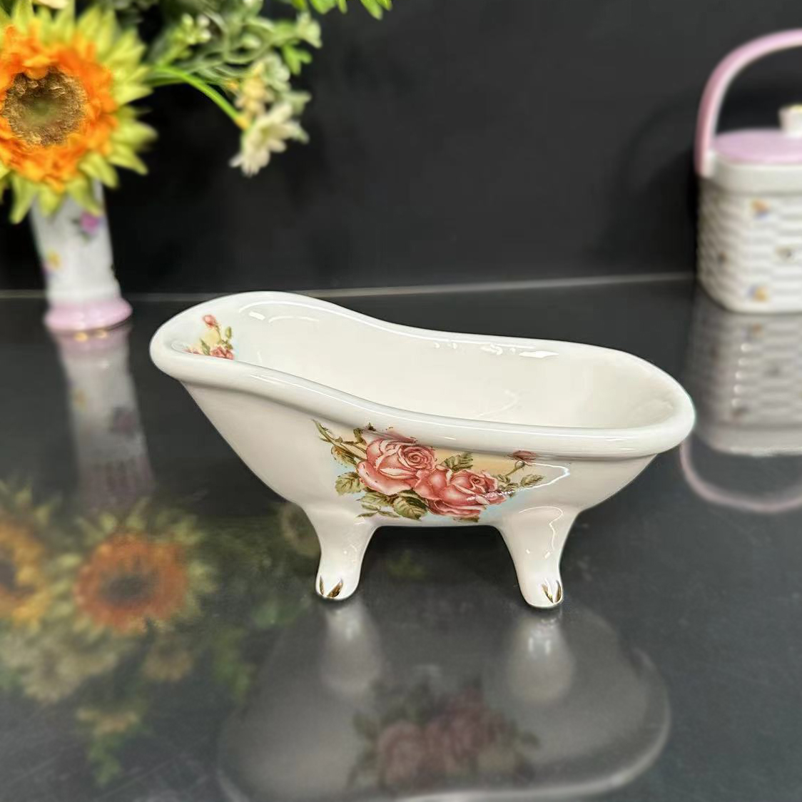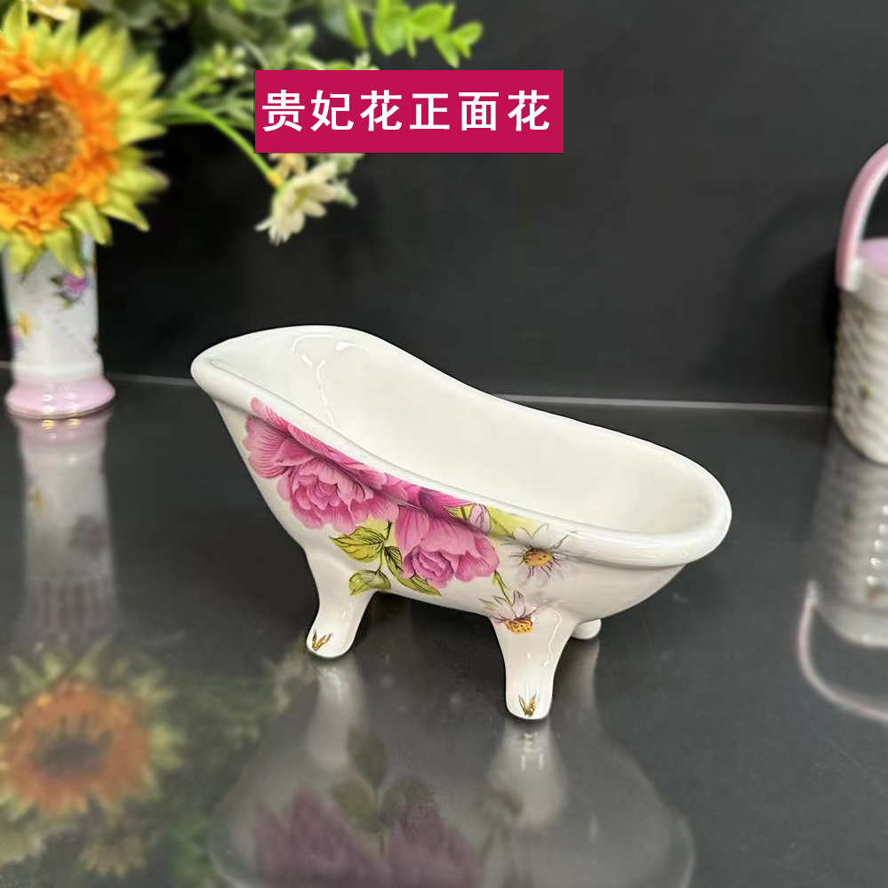 微瑕處理陶瓷小浴缸收納座小肥皂碟小首飾盒桌面四腳小收納多花色由