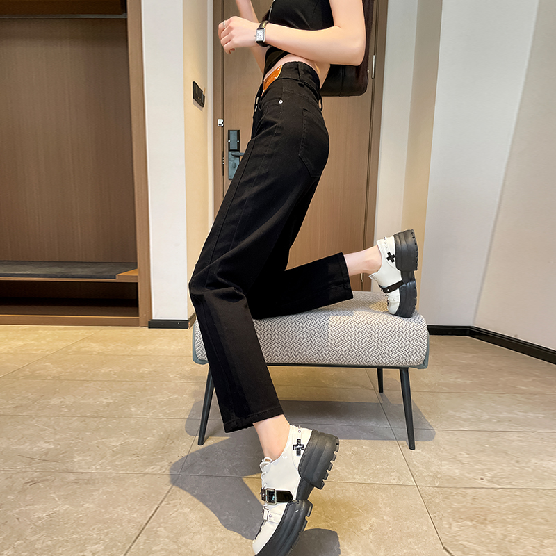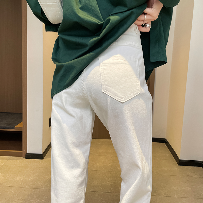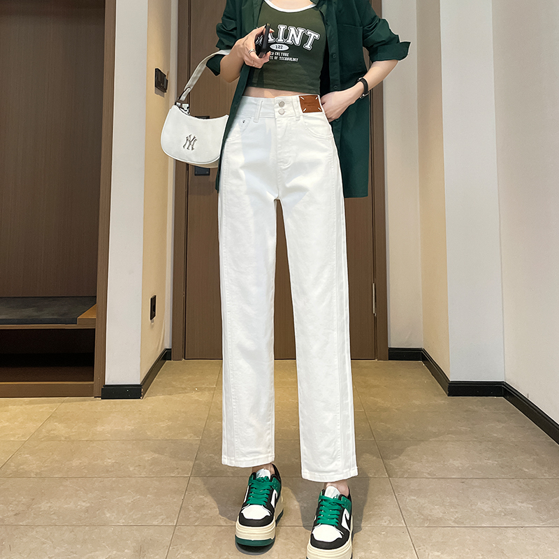 高腰寬松顯瘦九分小個子煙管褲 女直筒春秋2025年新款 米白色牛仔褲由