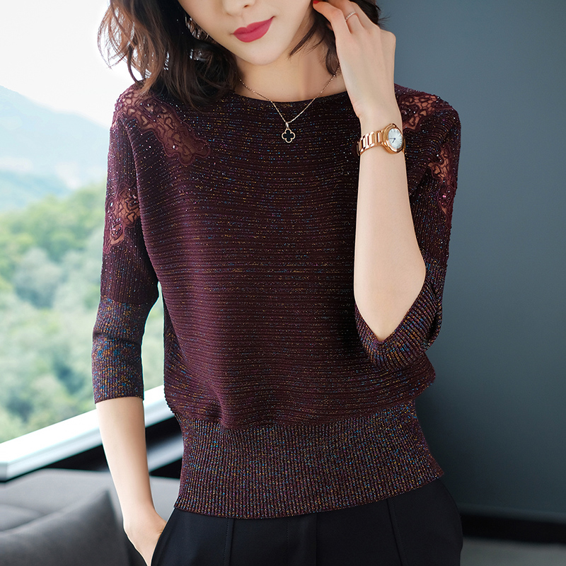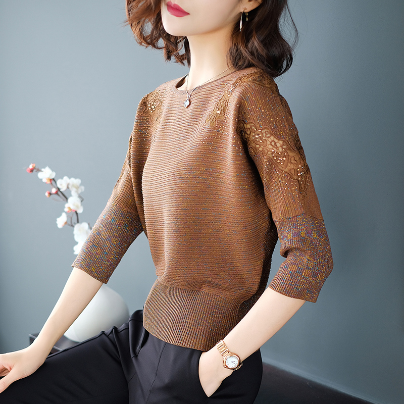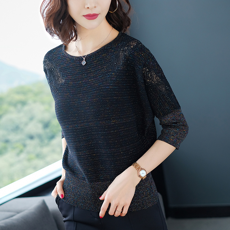 媽媽蕾絲洋氣高貴冰絲打底衫 春秋針織七分袖 女上衣中袖 2025年新款由