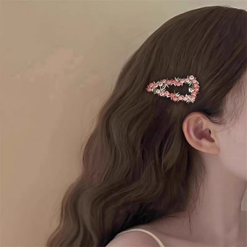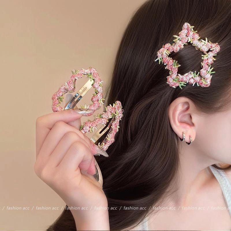 唯美小女孩碎發劉海夾子頭飾 兒童氛圍感愛心bb夾側邊粉色繡花新款由