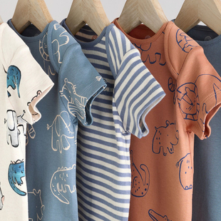 英國進口NEXT嬰幼兒夏裝 純棉新生寶寶三角哈衣動物涂鴉包屁衣 薄款由