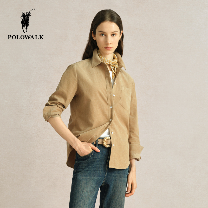 外套百搭長(zhǎng)袖 內(nèi)搭襯衣上衣 女士通勤秋款 POLOWALK純棉燈芯絨襯衫由