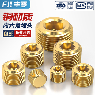 國標黃銅銅內六角堵頭悶頭公制英美制油堵管堵外純全1分2分3分4分由