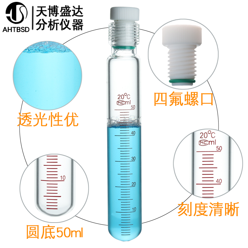 100ml平底圓底螺口比色管總磷總氮四氟耐壓管納氏比色管四氟試管天博盛達 玻璃耐壓管厚壁耐壓瓶10由
