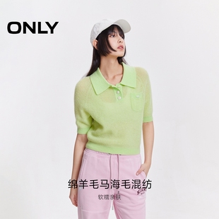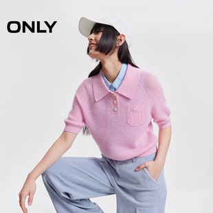 設(shè)計(jì)感百搭紐扣Polo領(lǐng)短袖 ONLY奧萊 夏季 女 針織衫由
