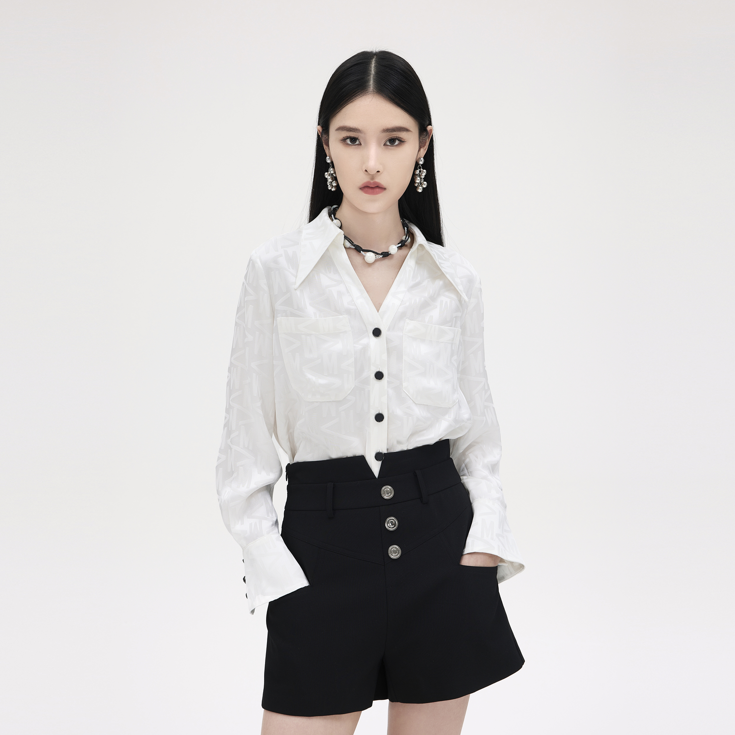 依妙EMU2025秋季 字母印花簡約通勤風V領(lǐng)設(shè)計薄款 襯衫 女 時尚由