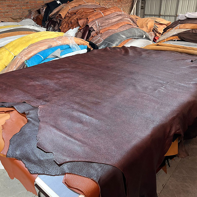 4mm厚牛皮料頭層紅棕色皮革面料真皮桌墊涼席沙發床墊黃棕色牛皮由