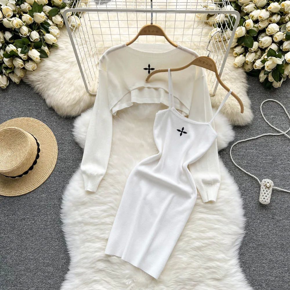 suspender with top set印花長袖 上衣吊帶長裙套裝 skirt Printed由