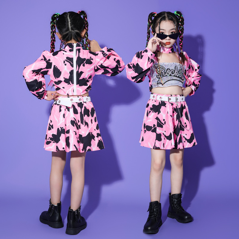 女童女團(tuán)爵士舞潮服兒童街舞嘻哈女孩演出服裝 酷 少兒模特走秀套裝由