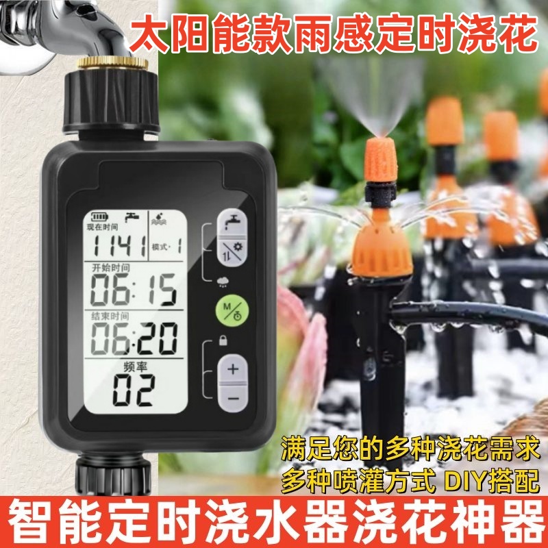 全新升級液晶大屏太陽能無限續航自動定時澆花器智能灌溉噴淋降溫由