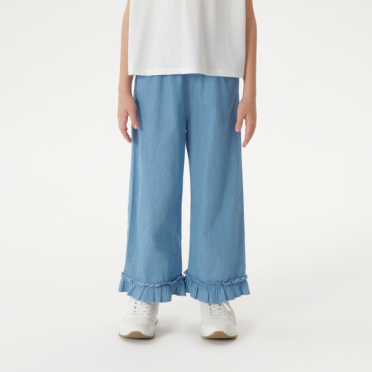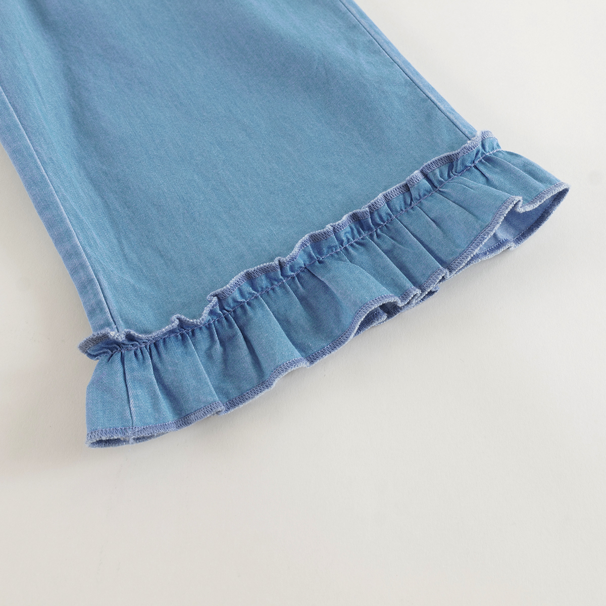 子2025年春夏新款 550857 寶寶褲 馬克珍妮女童甜美花邊牛仔闊腿褲由