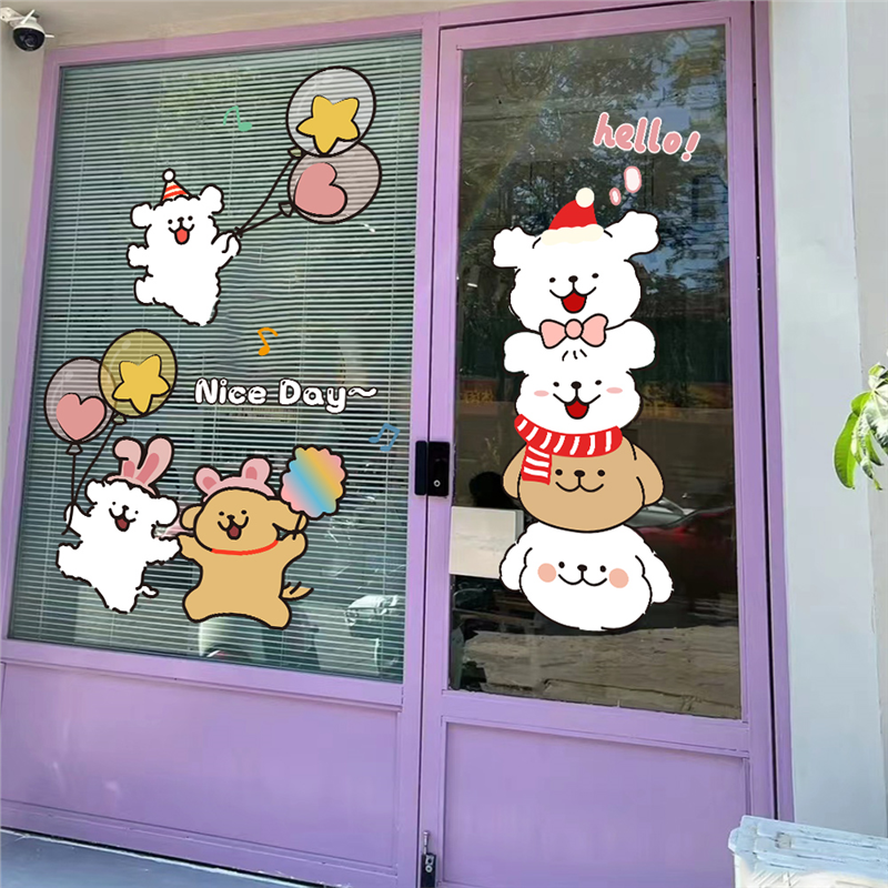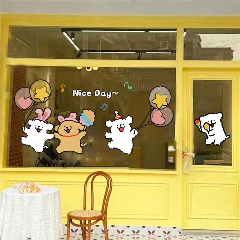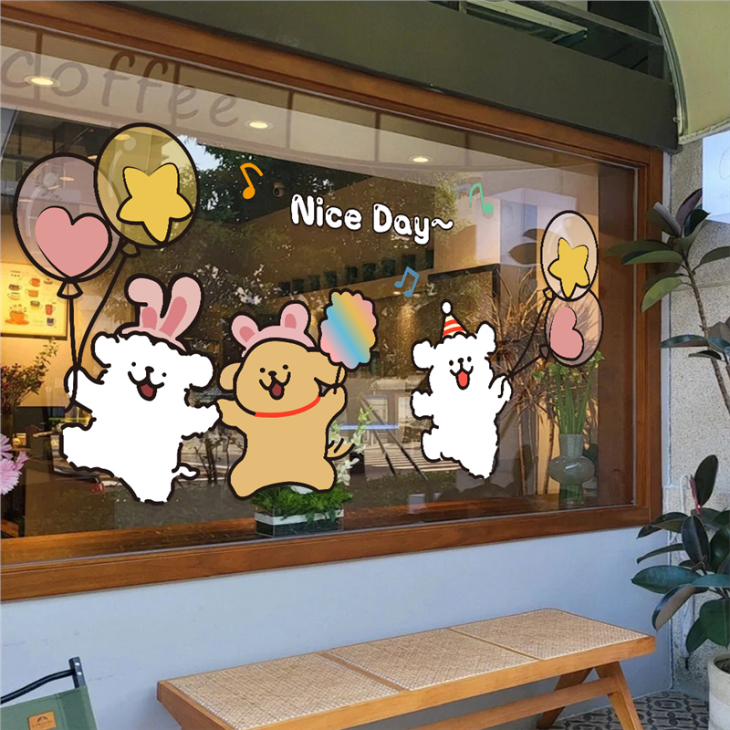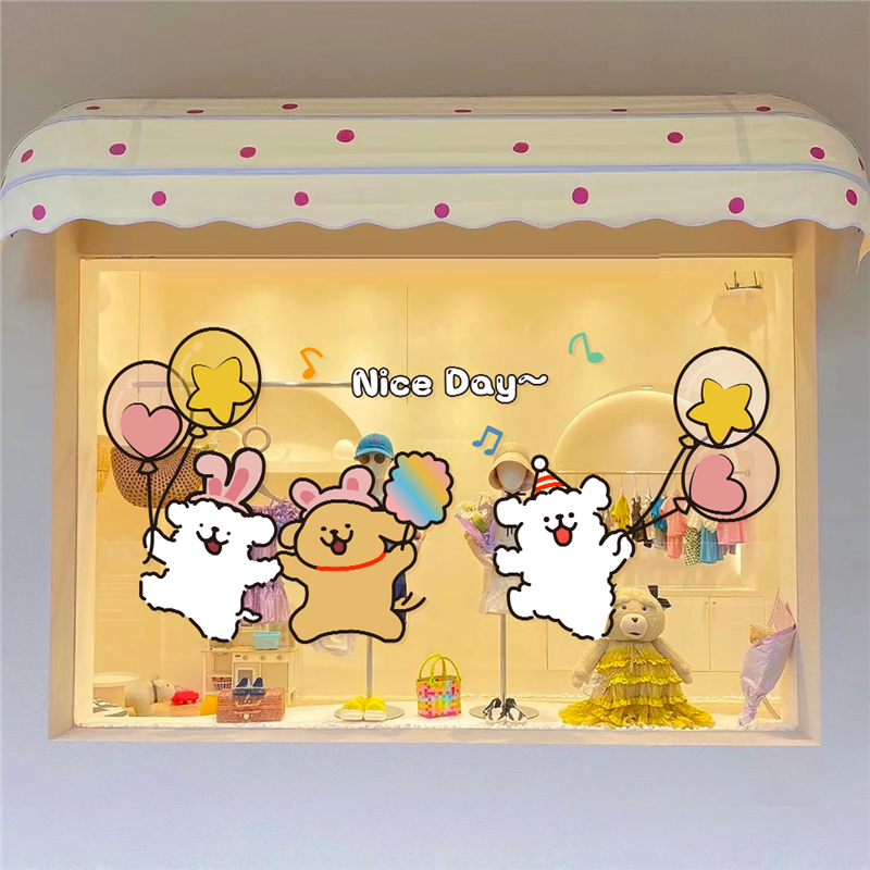 ins風氣球小狗靜電貼網紅童裝 飾貼畫窗花 店奶茶甜品玻璃門店鋪裝由