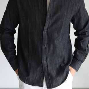 襯衣休閑商務四季 款 寬松日系長袖 酵素洗純棉牛仔襯衫 經典 丹寧由