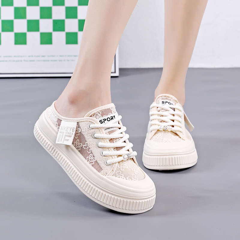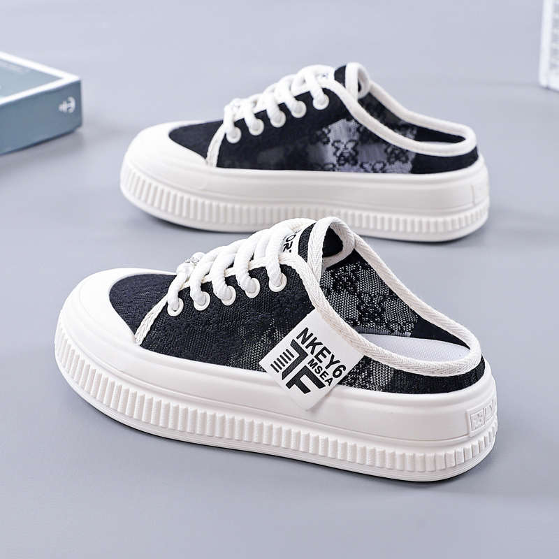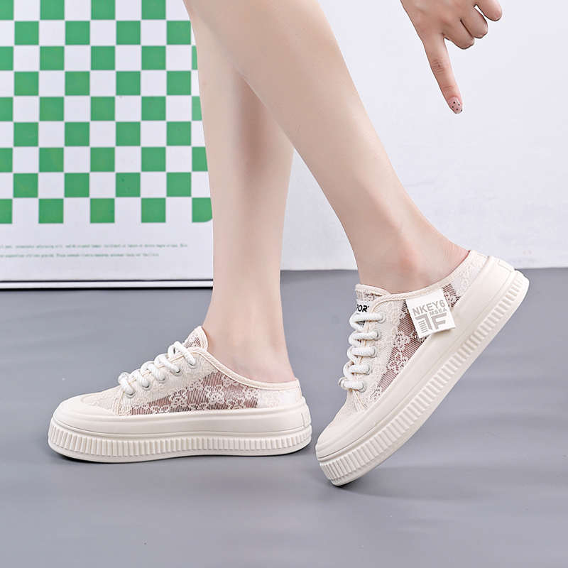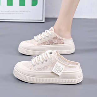 女鞋 半拖小白鞋 新款 子 涼拖包頭爆款 百搭網面拖鞋 外穿夏款 2025夏季由