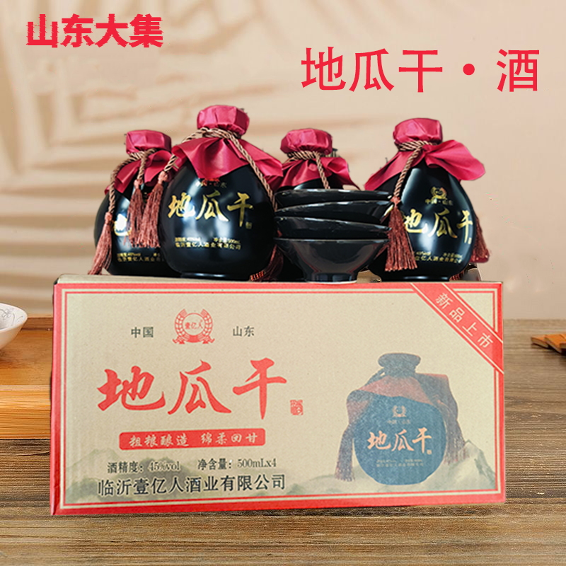 壹億人山東大集正宗地瓜干酒500ml 45度壇子酒 4送四個小碗正品由