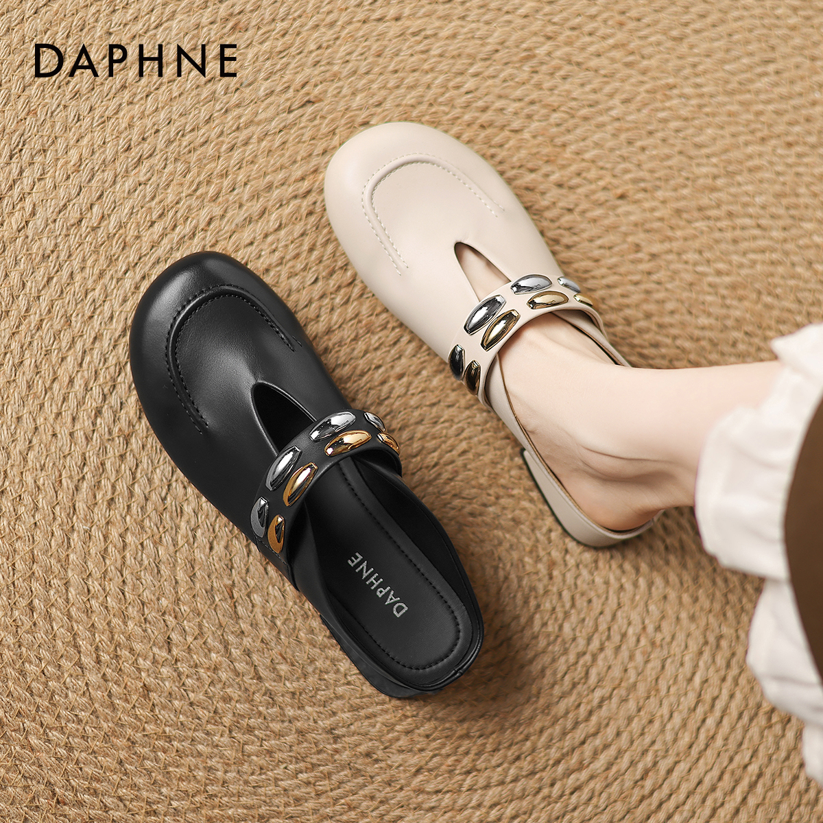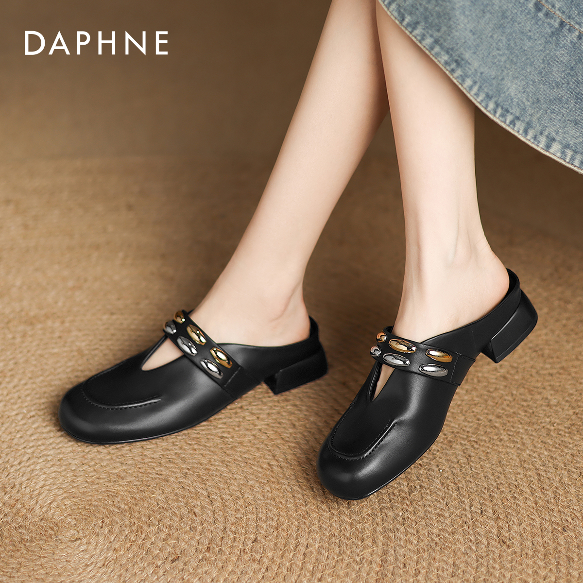 包頭涼拖鞋 達(dá)芙妮半拖鞋 黑色粗跟一腳蹬穆勒單鞋 夏季 女鞋 2025新款由