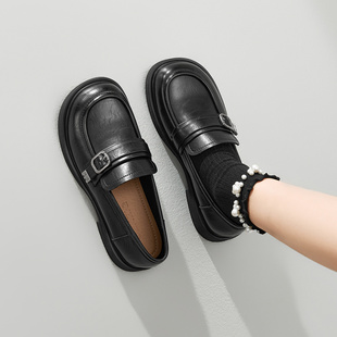 瑪麗珍鞋 真皮鞋 子女2025春秋新款 透氣皮鞋 休閑低跟小跟豆豆樂福鞋