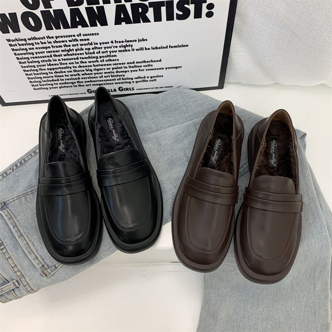 皮鞋 深口單鞋 新款 女2025秋季 胡連馨同款 千百度厚底真皮樂福鞋