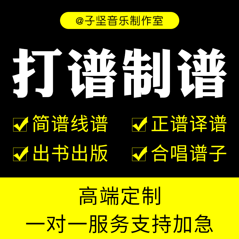 總譜分譜簡譜打譜翻譯五線譜移調制譜手寫電子稿A4紙 古箏出書排版由