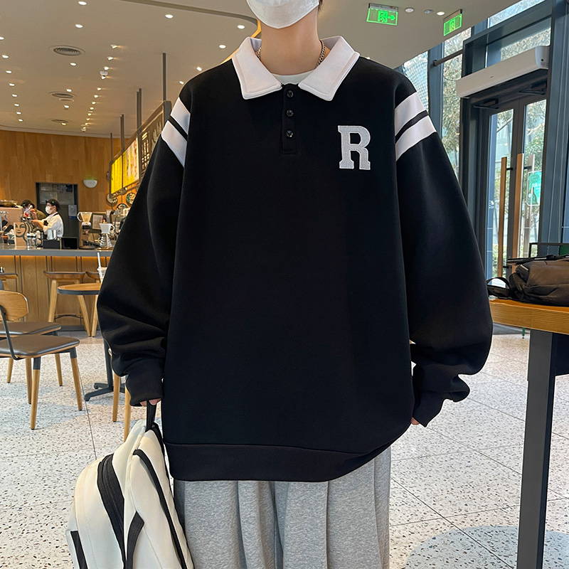 青少年衛(wèi)衣男生polo領(lǐng)初中高中學(xué)生內(nèi)搭大童上衣服潮裝 新款 春秋季由