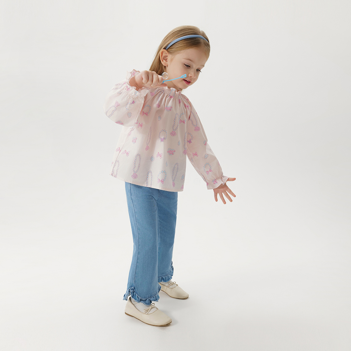 新款 250239 寶寶純棉襯衣2025年春裝 馬克珍妮女童甜美花邊領襯衫由