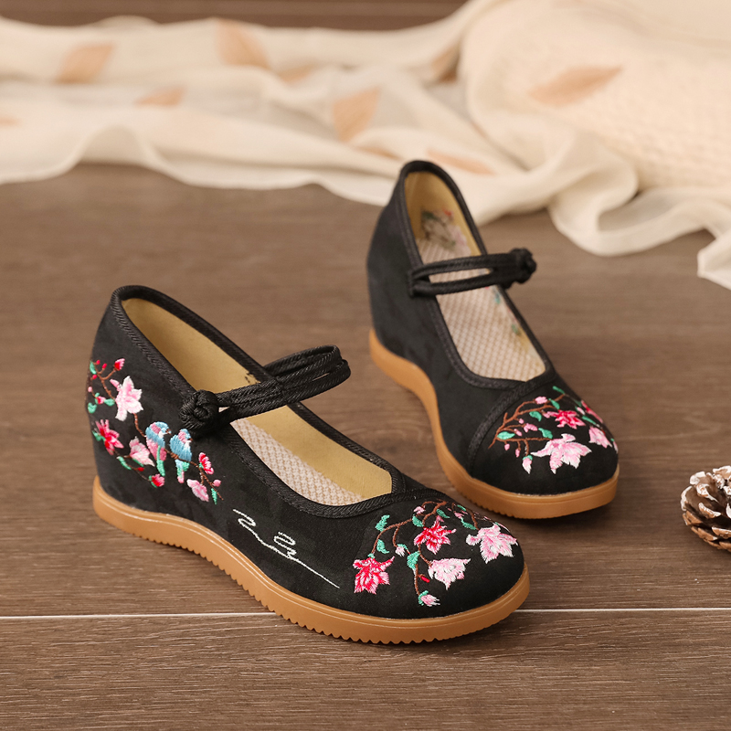 秋季 子老北京布鞋 內增高民族風旗袍厚底繡花鞋 高跟原創 古風漢服鞋