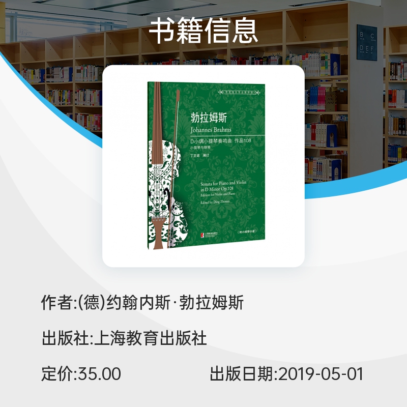 世紀(jì)弦樂(lè)作品圖書(shū)館 博庫(kù)網(wǎng) 附小提琴分譜作品108 勃拉姆斯D小調(diào)小提琴奏鳴曲由