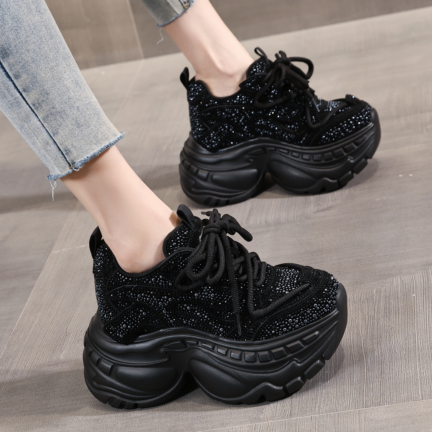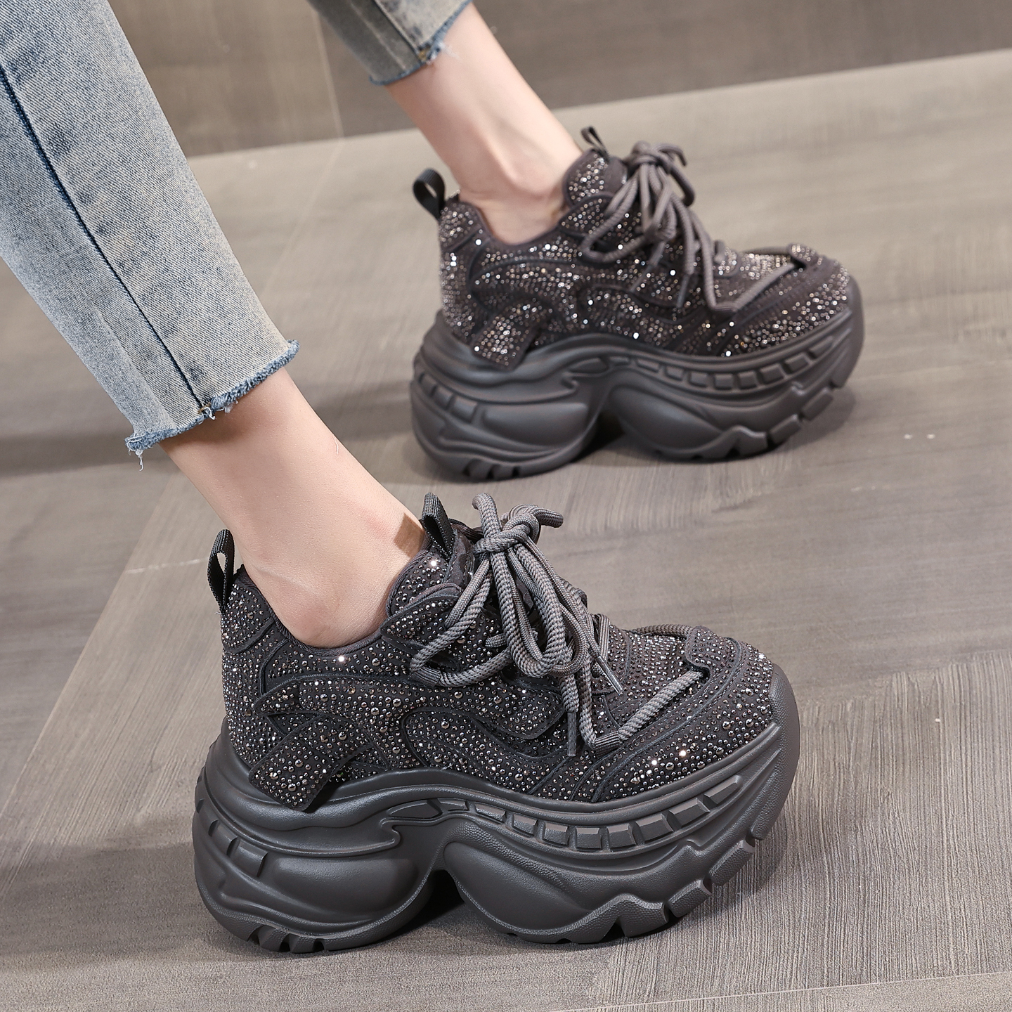 女款 時(shí)尚 新款 高級(jí)厚底帶鉆內(nèi)增高老爹鞋 輕便2025秋女士松糕休閑鞋由