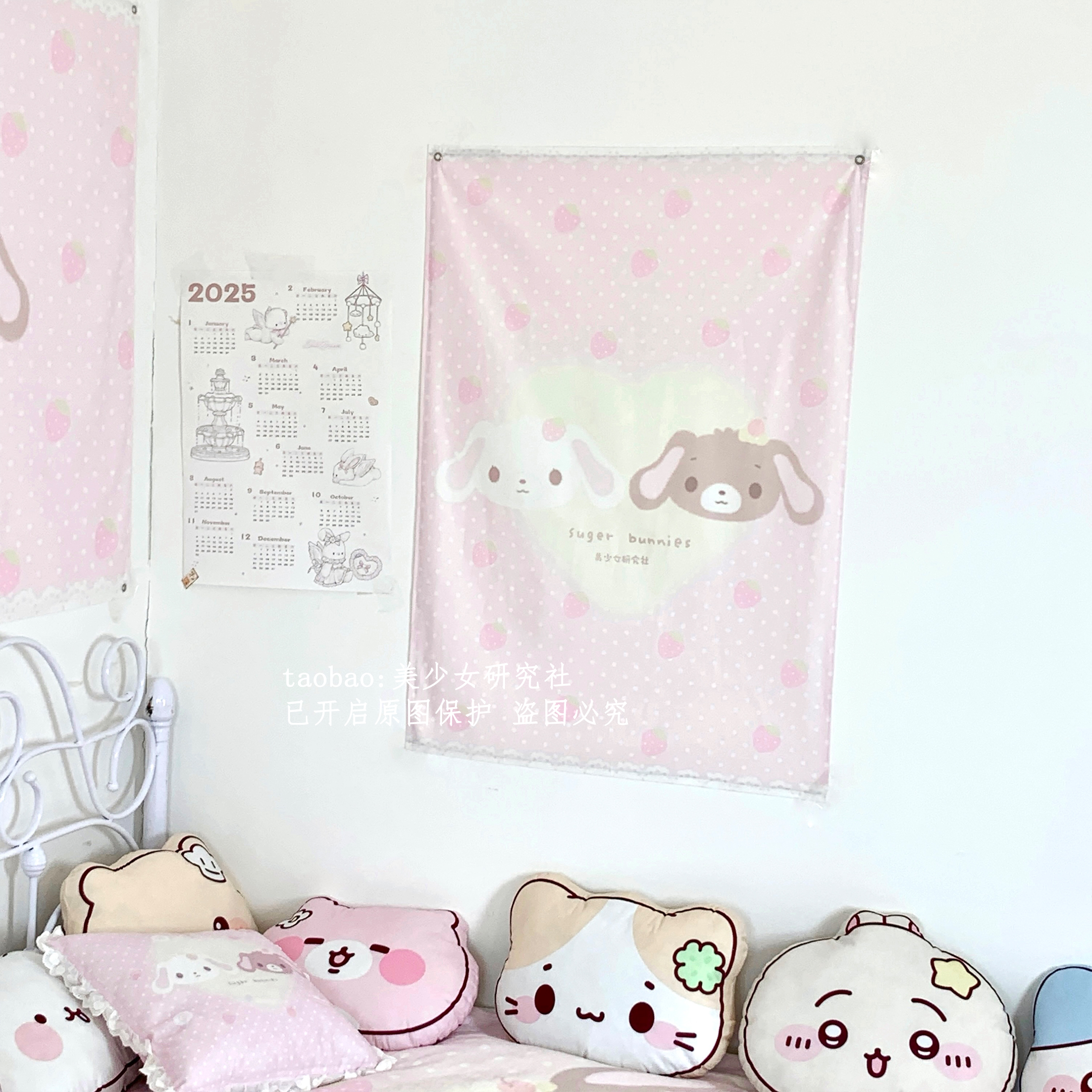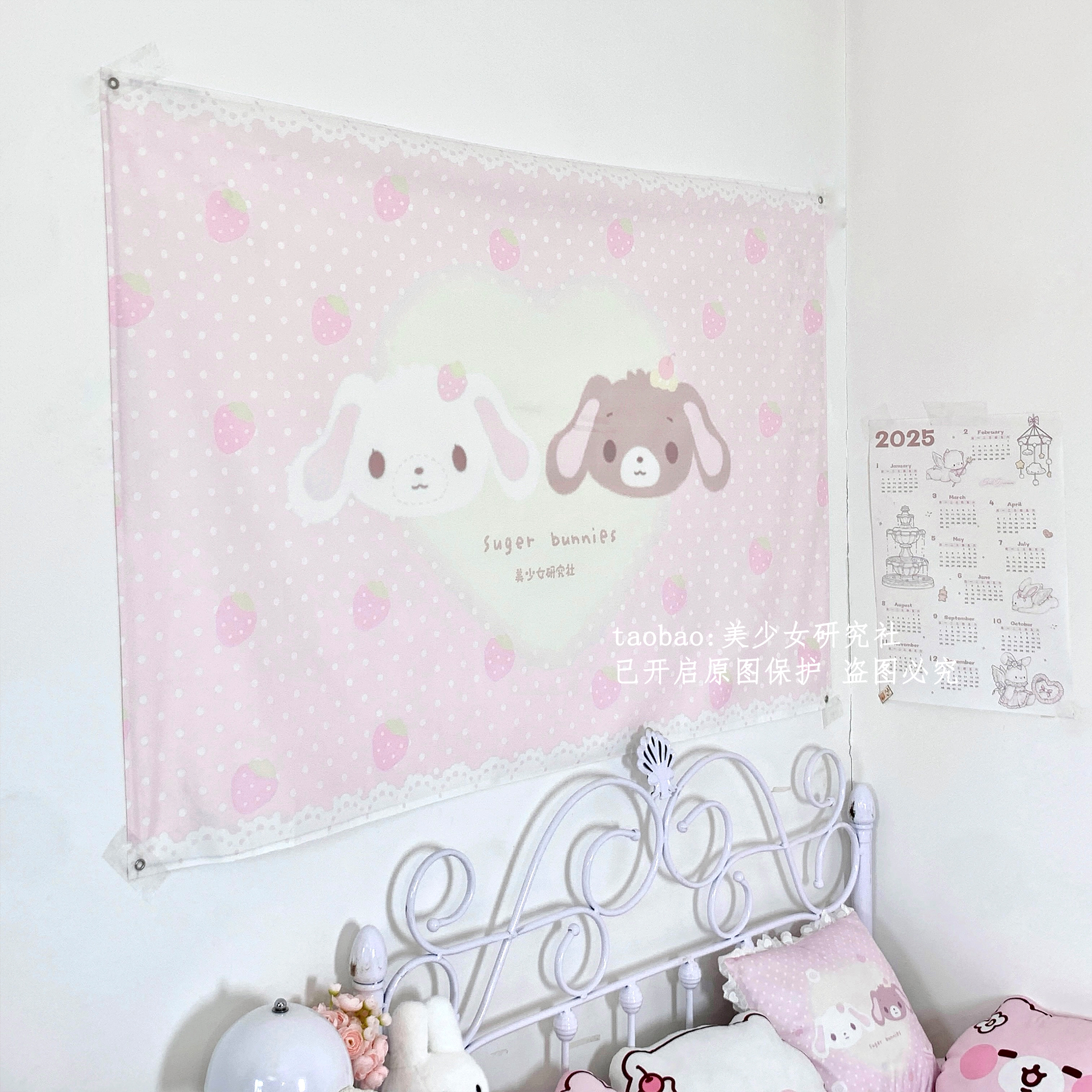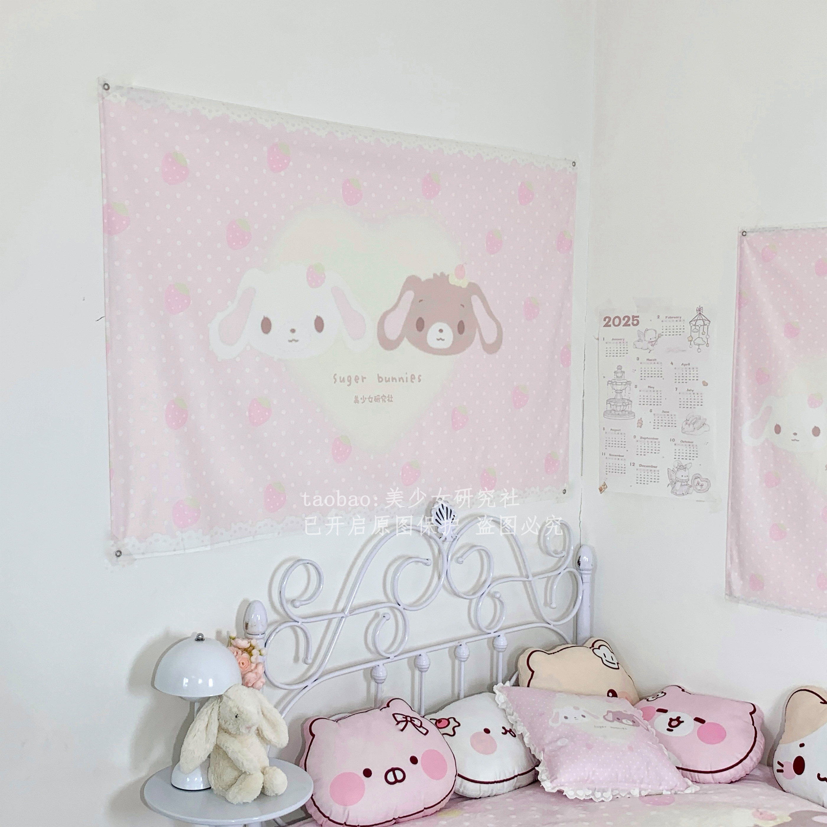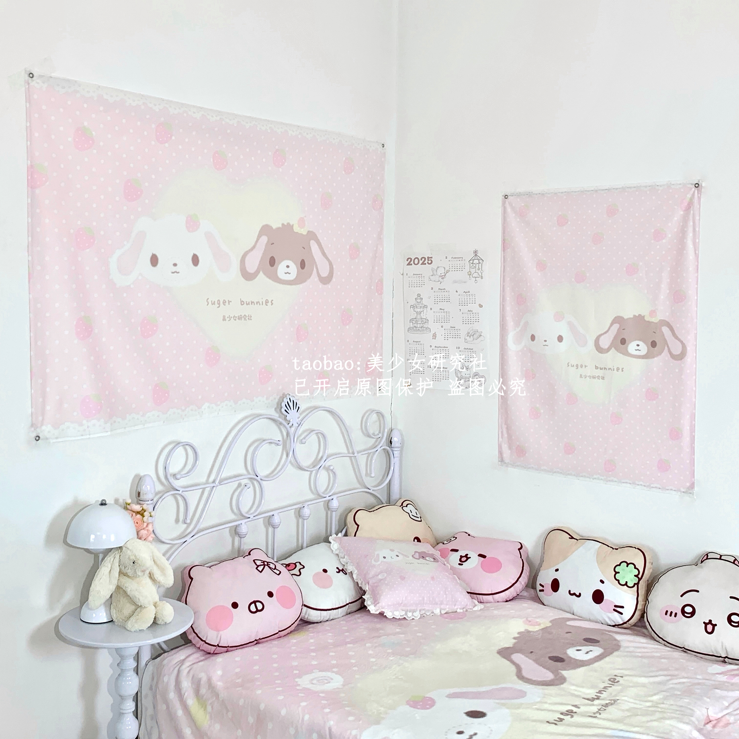 飾改造墻布 原創(chuàng)自制甜點(diǎn)兔日系卡通可愛背景布宅女掛布宿舍房間裝由