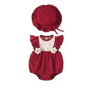 英國NEXT紅色秋冬嬰兒連體衣寶寶生日衣服滿月周歲三角哈衣爬爬服由