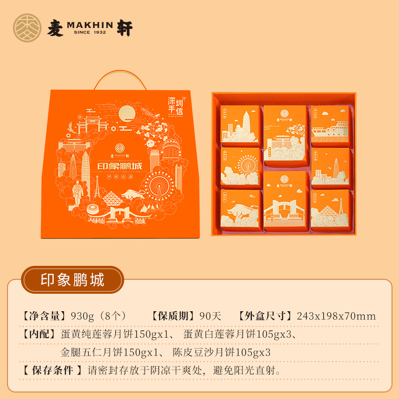 五仁 麥軒印象鵬城深圳手信限定多口味中秋禮盒蛋黃白蓮蓉月餅廣式由