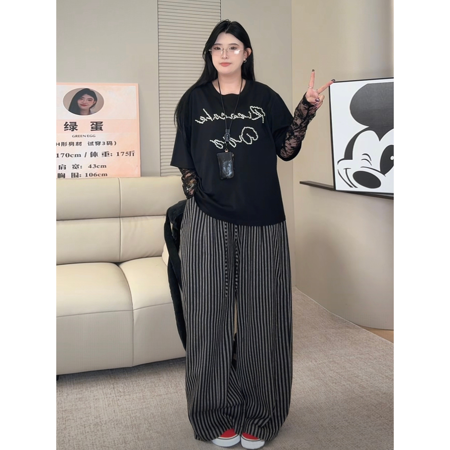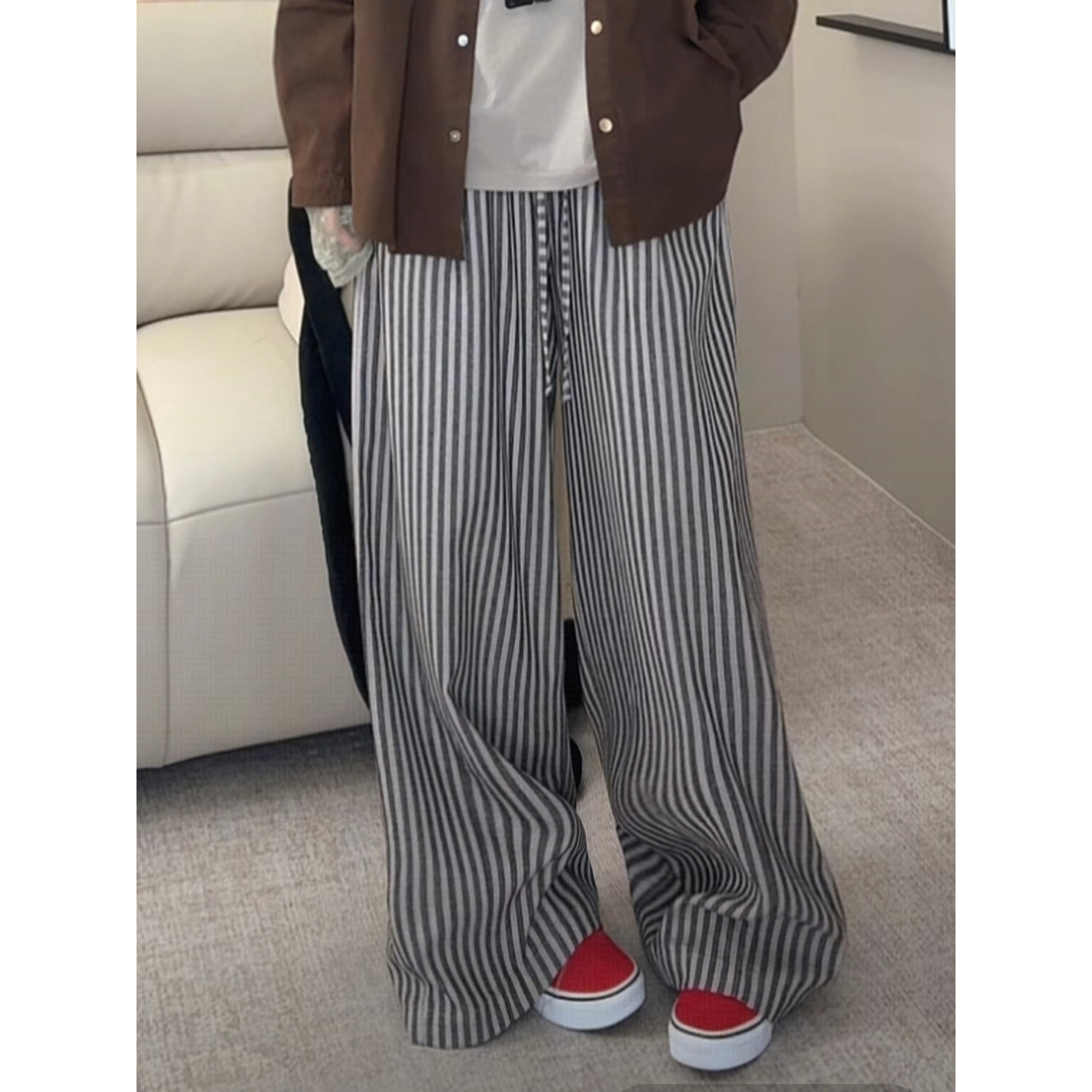 長褲 7994 秋高腰遮肉闊版 寬松條紋褲 松弛Buff 質(zhì)感絕絕子韓版由