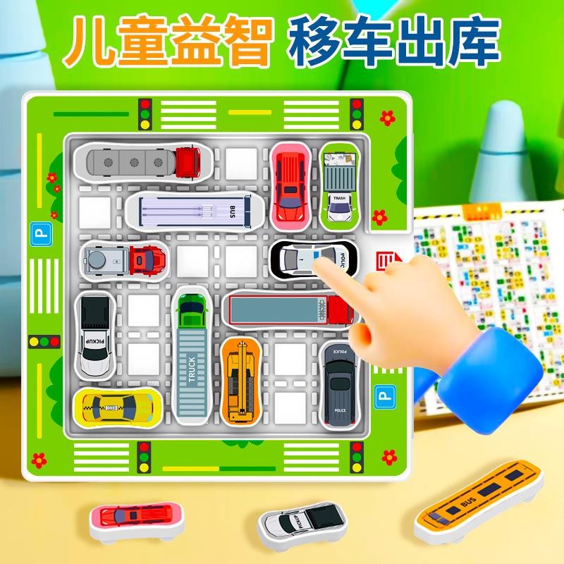 兒童移車出庫汽車華容道思維訓(xùn)練幼兒園玩具賽車突圍解題闖關(guān)玩具由