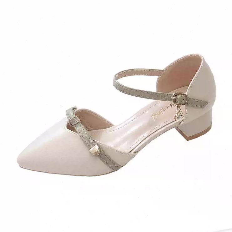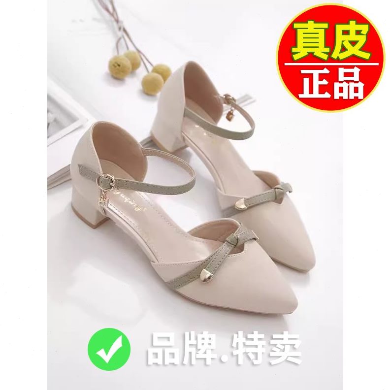 新款 粗跟配裙子婧蜓低跟涼鞋 女紅尖頭涼鞋 夏季 女一字扣帶 中跟單鞋由
