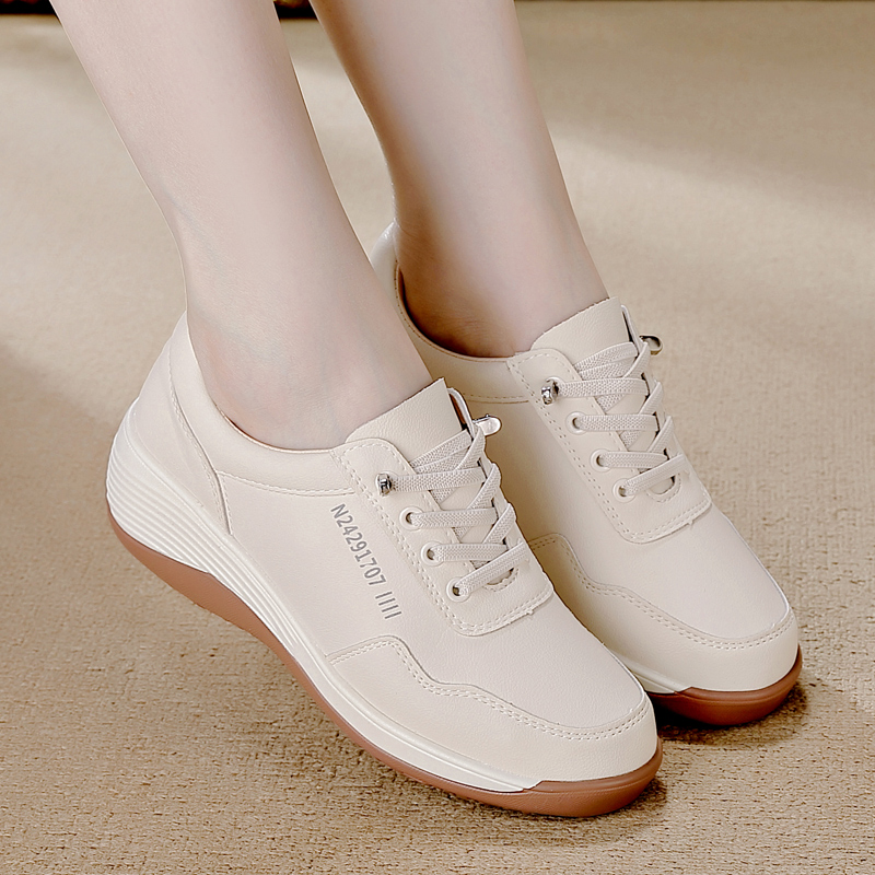 真皮厚底小皮鞋 中老年軟底女士旅游鞋 一腳蹬健步休閑鞋 女2025新款由