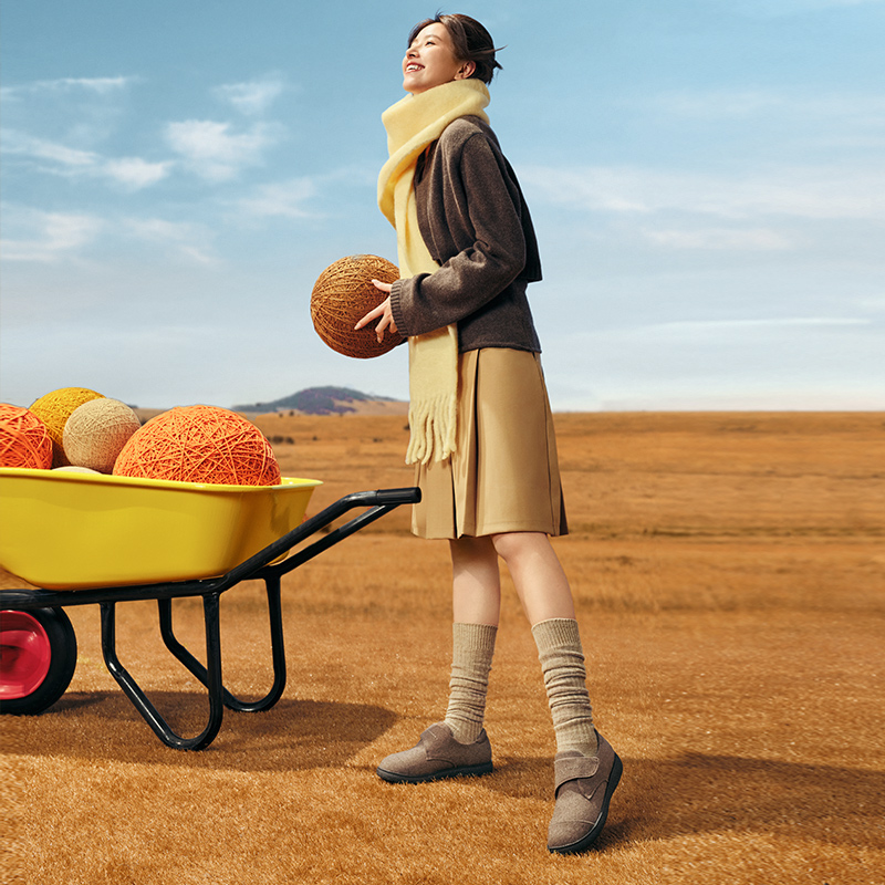 Pansy盼喜日本女鞋 2025年秋季 新款 超輕舒適毛呢百搭魔術(shù)貼休閑鞋由
