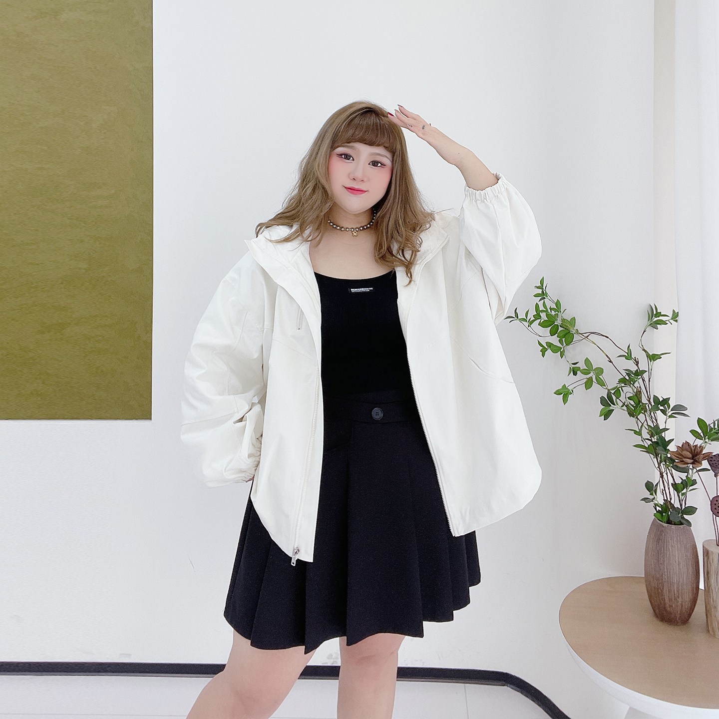 休閑風時尚 女裝 秋季 大口袋純色夾克外套 連帽登山服潮胖瑩瑩加大碼由
