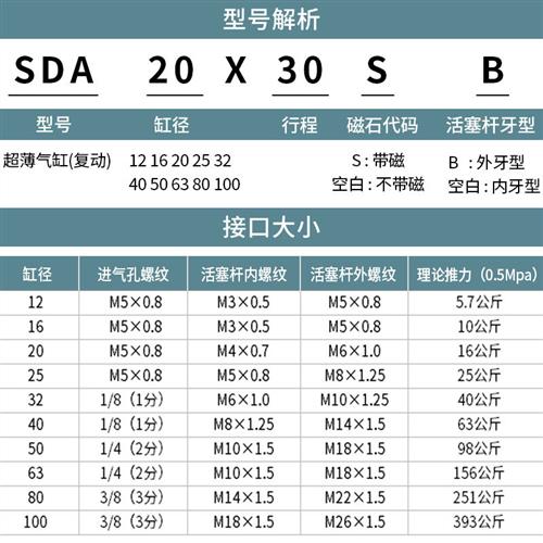 SDA薄型氣缸小型氣動(dòng)20 5X10X15X20X25X30X40X50X75X100由