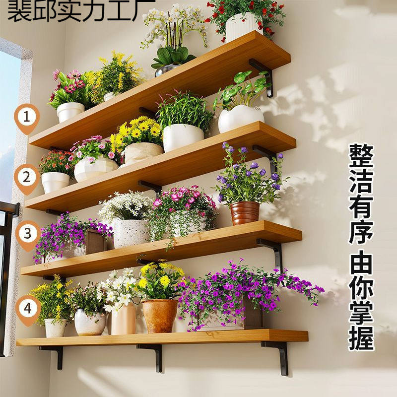 飾多層展示架 墻上花架鐵藝實木復古置物架壁掛一字隔板層板書架裝由